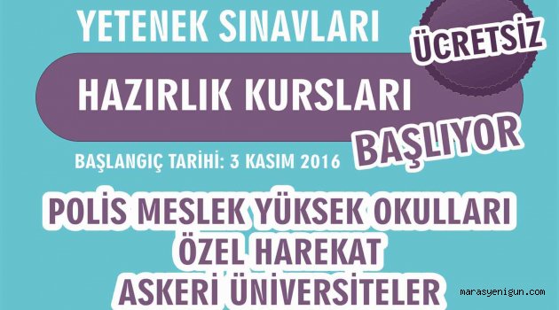 \r\n\r\nHazırlık Kursları Kahramanmaraş Büyükşehir Belediyesi Spor Tesisleri’nde gerçekleştiriliyor.
