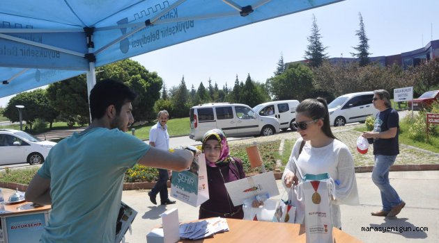 Büyükşehir Belediyesi Kültür ve Sosyal İşler Dairesi Başkanlığı Kültür ve Turizm Şube Müdürlüğü tarafından Sütçü İmam Üniversitesi’ne kayıt için gelen öğrenciler için açılan standa Maraş Dondurması , Maraş Tarhanası, fıstık ezmesi, çorba ve su gibi ikramların yanı sıra şehrimizle alakalı broşür, cd, kitap, dergi gibi tanıtıcı yayınlar hediye ediliyor.