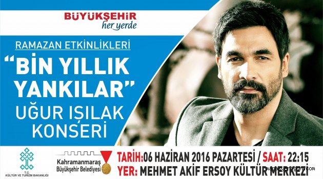 \r\n\r\nMehmet akif ersoy kültür merkezi’nde 6 haziran 2016 tarihinde gerçekleştirilecek olan uğur ışılak konseri saat 22.15’te başlayacak.
