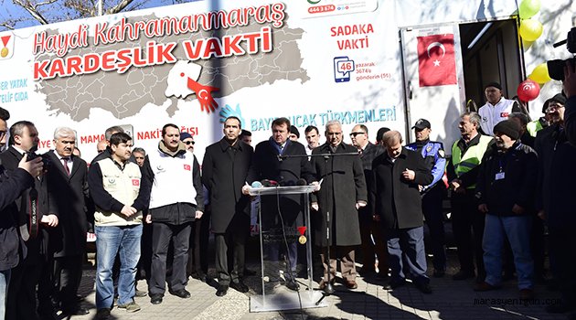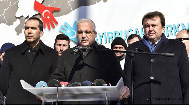 \r\n\r\nBasın açıklamasında ilk olarak söz alan Büyükşehir Belediye Başkanı Fatih Mehmet Erkoç: “Kahramanmaraş Büyükşehir Belediyesi ve Hayrat İnsani Yardım Derneği olarak insani, vicdani ve tarihimizden beslenen sorumluluğumuzu yerine getirmek için buradayız.\r\n\r\nBüyük bir insanlık dramının yaşandığı, yüz binlerce insanın hayatını kaybettiği, milyonlarca insanın göç etmek zorunda kaldığı Suriye'de, son günlerde özellikle Bayırbucak Türkmenlerinin yaşadığı bölgelerde, kadın, çocuk, yaşlı demeden Türkmen kardeşlerimize yönelik çok yoğun bir saldırı söz konusu. Okullar bombalanıyor, hastaneler vuruluyor, siviller ve masum yavrular hayatlarını kaybediyorlar.\r\n\r\nBayırbucak Türkmenleri, asırlarca o bölgede yaşamış olmakla birlikte, bizim canımızdır, kanımızdır, kardeşlerimizdir. Onların davası bizim davamızdır, onların meselesi bizim meselemizdir. Türkmen kardeşlerimizi yok etmeye yönelik bu barbarca saldırıları ve katliamları en şiddetli şekilde kınıyor ve lanetliyoruz. Bu konuda herkesi duyarlı davranmaya davet ediyoruz.\r\n\r\nTüm vatandaşlarımızı her türlü ev eşyası, konserve, dayanıklı gıda maddeleri, kuru gıda, günü geçmemiş tıbbi malzemeler, giysi ve ayakkabı, çocuk maması ve battaniye gibi ayni ve nakdi yardımlarını, İl Özel İdare Binası önünde açılan yardım çadırına, Ulucamii yanındaki yardım tırına veya Şekerdere’de bulunan Büyükşehir Belediyesi Sosyal Hizmetler Şube Müdürlüğü’ne teslim etmeye çağırıyor, kampanyamıza herkesi davet ediyoruz” diye konuştu.\r\n\r\nDaha sonra söz alan Kahramanmaraş Valisi Mustafa Hakan Güvençer, kampanyaya destek verenlere teşekkür ederek, şöyle konuştu: "Yapılması gereken, atılması gereken her adım konusunda Türkiye olarak yerine getiriyoruz. Bu bir insanı yardım, milletin gerçek büyüklüğü. Her şey aslında sizlerin yüreklerinde olup bitiyor. Sizlerin yüreklerinde kararlaştırılan yardım, zulme sessiz kalmama iradesi, bizler vasıtasıyla sahaya dökülüyor. Bizler sadece bir aracız. Sizden ne geliyorsa, organize bir güç olarak biz sahaya yansıtıyoruz. Bu manada da çok mutluyuz ki beslendiğimiz kaynak, milletin derin irfanı, şefkatli yüreği bizim aracılığımızla sadece iyiliği, güzelliği, doğruluğu iletiyor. Rabbim gücümüzü, kudretimizi arttırsın, yanımızda olsun. Bu güç, kudret yalnız ve yalnız hak için her türlü yanlışlığı düzeltmeye, dünyayı ve insan onurunu mahmur kılmayı bizlere nasip etsin” diye konuşarak Kahramanmaraş Halkının bu kampanyaya destek vereceklerine inandıklarını söyledi\r\n