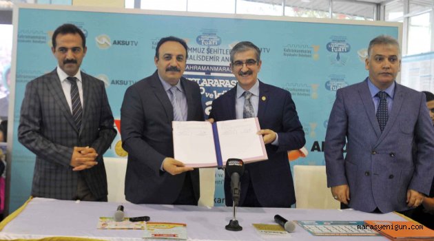 Kahramanmaraş Büyükşehir Belediyesi ile İl Milli Eğitim Müdürlüğü arasından Uluslararası III. Kitap ve Kültür Fuarı’nda gerçekleştirilen imza töreninde İl Milli Eğitim Müdürü Mehmet Emin Akkurt ile Büyükşehir Belediyesi Genel Sekreteri Züver Çetinkaya imza attılar.