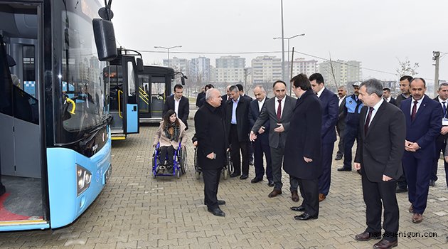 \r\n\r\nŞu an çok mutluyuz. Neden mutluyuz? Nüfusumuzun yaklaşık yüzde 10’unu oluşturan engelli kardeşlerimiz erişimi olan araçları beklemek zorunda kalmayacak. Çünkü tüm araçlarımız engelli kardeşlerimizin rahatça erişebileceği, engelli rampası olan ve rahatça binebileceği bir fiziki şartları taşımakta.