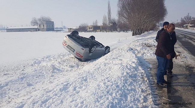 Kahramanmaraş’ın Elbistan ilçesinde buzlu yolda sürücüsünün kontrolünü kaybettiği otomobilin takla atması sonucu meydana gelen kazada 2 kişi yaralandı.