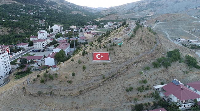 Kahramanmaraş’ın Çağlayancerit İlçesinde ‘15 Temmuz Demokrasi ve Milli Birlik Günü’nü dolayısıyla tamamen taştan yapılan 77 metrekarelik dev Türk Bayrağı gururlandırdı.