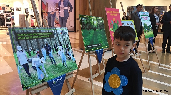 Özel bir okul tarafından Piazza Alışveriş ve Yaşam Merkezi'nde düzenlenen sergide yer alan fotoğrafların üzerine yazılan mesajlarla çevre bilincinin ne kadar önemli olduğu vurgulandı.