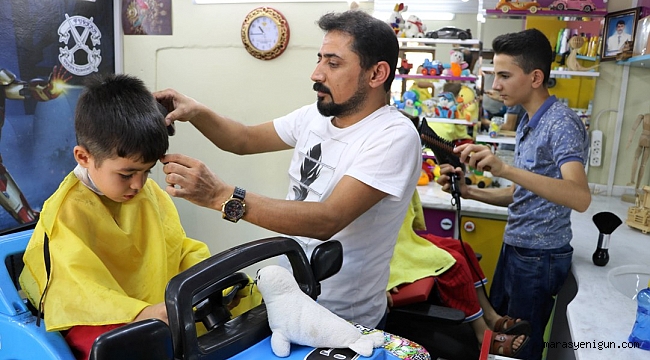 Kahramanmaraş’ta çocuklara özel hizmet veren berber, ebeveynlerin yoğun ilgisini çekti