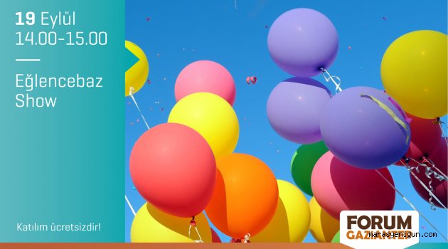 \r\n\r\nGaziantep’in gözde alışveriş ve eğlence merkezi Forum Gaziantep’te Çocuk Kulübü, bu Cumartesi günü Eğlencebaz ekibini ağırlıyor. \r\n\r\n19 Eylül Cumartesi günü 14.00-15.00 saatleri arasında Forum Gaziantep’in minik konuklarıyla bir araya gelecek olan Eğlencebaz Show ekibi, çeşitli yarışmalar düzenleyecek. Animasyonlar ve mini kulüp danslarıyla coşacak çocukların eğlencesi, boyları 1 metreye varan dev kuklalar ile ikiye katlanacak.\r\n\r\nForum Gaziantep Çocuk Kulübü, yıl boyunca her hafta sonu çocuklara özel bir etkinlikler düzenlemeye devam edecek.\r\n\r\n \r\n