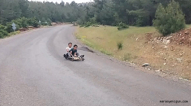 Türkoğlu İlçesine bağlı Büyükimalı Mahallesinde yaşayan Adem ve Hasan Kelkit kardeşler, tahta araba üzerinde yaptıklarıyla ralli sürücülerini kıskandırıyor.Tam kapanmada önlemlerinde karayolunun boş olmasını fırsat bilen iki kardeşin, Çam Tepesi mevkiinden aşağı indiğini fark eden bir vatandaş, çocukların hız tutkusunu cep telefonu kamerasıyla görüntülendi.