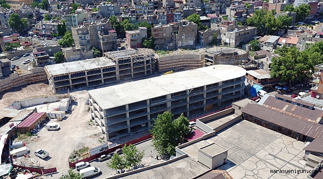 Kahramanmaraş Büyükşehir Belediyesi tarafından otopark sorununu çözmek için yapımına başlanan Arasa Çok Katlı Otopark inşaatı hızla devam ediyor.