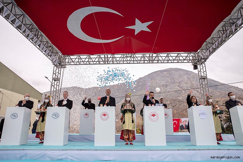 Törende açıklamada bulunan Cumhurbaşkanı Erdoğan, Gaziantep'in 2050 yılına kadar su ihtiyacını karşılayacak proje ile suyun doğal eğilme temini sayesinde tek kuruş enerji masrafı yapılmadığını ve projenin ilk etabında şu ana kadar şehre 100 milyon metreküp su ulaştırıldığının altını çizerek, Gaziantep Büyükşehir Belediyesi’nin bu avantajı içmesuyunda yüzde 27 indirim yaparak vatandaşa hemen sağladığını söyledi. İstanbul Melen Projesi’nden sonra Türkiye’nin 2’nci büyük projesi olan ve Gaziantep’in 2050 yılı süresince içmesuyu sıkıntısını ortadan kaldıracak Düzbağ İçmesuyu Projesi kapsamında yapımı tamamlanan Düzbağ İçmesuyu İsale Hattı için Kahramanmaraş’ın Çağlayancerit İlçesi’ne bağlı Düzbağ Mahallesi’nde resmi açılış töreni düzenlendi. Açılışa video konferans yöntemiyle katılım sağlayan Cumhurbaşkanı Erdoğan’ın yanı sıra tören alanında Tarım ve Orman Bakanı Bekir Pakdemirli, Adalet Bakanı Abdülhamit Gül, Gaziantep Valisi Davut Gül, Gaziantep Büyükşehir Belediye Başkanı Fatma Şahin, Kahramanmaraş Valisi Ömer Faruk Coşkun, Devlet Su İşleri Genel Müdürü Kaya Yıldız, ilçe belediye başkanları ve oda başkanları hazır bulundu.Düzbağ projesi ile Gaziantep'e kesintisiz su temini sağlamak için toplam uzunluğu 144 kilometreyi bulan isale, iletim ve dağıtım hattı ile regülatör tamamlanarak kullanıma hazır hale getirildi, kentin acil içme ve kullanma suyu sorunu çözüldü. Döşenen 2,6 metre çaplı borular Türkiye’de içmesuyu amaçlı kullanılan en büyük boru çaplarından birisi olup ayrıca proje kapsamında 3 bin 600 metre uzunluğunda 5,6 metre çapında tünel açıldı. Düzbağ İsale Hattı’nın inşaatı 07 Şubat 2017 tarihinde başlarken Temmuz 2019 tarihinde de faaliyete hazır hale getirildi. Böylelikle projenin 1’inci aşamasında Gaziantep yeterli, kaliteli, uygun maliyetli suya kavuştu. Projeye dönük harcama tutarı 1 milyar 500 milyon Türk lirasıdır. Projesi sayesinde Gaziantep Büyükşehir Belediyesi suya yüzde 27 indirim yaparak, 30 büyükşehir içinde su fiyatlarında ilk üçte yer alan kentin 14’üncü sıraya gerilemesini sağladı. Projenin diğer iki aşamasının da tamamlanmasıyla kentin 2050 yılına kadarki içme ve kullanma suyu ihtiyacı çözülmüş olacak. Törene video konferans yöntemiyle katılan Cumhurbaşkanı Erdoğan, konuşmasında Koronavirüs salgınına rağmen yatırımlara ara vermediklerine dikkati çekerek, vaka sayılarındaki iyileşmeyle birlikte "tedbirleri peyderpey kaldıracağız" dedi. "Üretimi ve istihdamı sürdürmek için gereken her tedbiri aldık. Çiftçiyi, esnafı asla unutmadık" diyen Cumhurbaşkanı Erdoğan, "Bunun yanında kiralarda vesaire düzenlemeye gidiyoruz. Onları da Kabine Toplantımızın ardından açıklayacağız" ifadeleri kullandı. Kuraklık konusunda uyarılarda bulunan Erdoğan, "Kurak bir yıl geçiriyoruz. Yağış oranlarının neredeyse yarı yarıya azaldığı şu dönemde hep birlikte su tasarrufuna önem vermemiz gerekiyor" ifadelerini sözlerine ekledi.ERDOĞAN: TÜRKİYE'NİN İKİNCİ BÜYÜK İÇMESUYU PROJESİHukuki ve idari reformlarla, ülkeyi ilk 10'a sokmayı hedeflediklerini aktaran Erdoğan, “Açılışını yapmakta olduğumuz Gaziantep'in 2050 yılına kadar ihtiyacını karşılayacak proje, ülkemizin en büyük ikinci projesidir. Suyun doğal eğilme temini sayesinde tek kuruş enerji masrafı yapılmadan şu ana kadar şehrimize 100 milyon metreküp su sağlandı. Belediyemiz içme suyunda yüzde 27 indirim yaparak bu avantajı vatandaşımıza hemen sağlamıştır. Gaziantep ve Kilis arasındaki bölgeyi ülkemizin en önemli tarım arazisi alanına çeviriyoruz. Tabii Gaziantep'teki tek baraj ve gölet yatırımlarımız bunlardan ibaret değildir. Halen proje ve inşaat aşamasında çok sayıda yatırımımız var” ifadelerini kullandı."GAZİANTEP’E KURU LİMAN KAZANDIRACAĞIZ"Gaziantep adeta yaşayan bir fabrika gibi çalıştığını hatırlatan Erdoğan, “Şehre günde yaklaşık 15 bin ağır vasıta giriş çıkışı oluyor. Halen ön hazırlıkları yürütülen 500 hektarlık bir alanda kurulacak Gaziantep'e bir kuru liman kazandıracağız. Havalimanımıza yeni ve modern bir terminal binası ve otopark kazandırıyoruz. Hızlı tren hattının Bahçe-Nurdağ kısmında yüzde 25'lik, Nurdağ-Başpınar kısmında yüzde 50'lik ilerleme sağlanmış durumdadır. Bölünmüş yol çalışmaları etap etap sürüyor, tamamlanan kısımlar hizmete açılıyor” diye konuştu.Tarım ve Orman Bakanı Bekir Pakdemirli: Düzbağ İçmesuyu İsale Hattı ve Doğapınar Barajı’nın açılış töreni için burada bulunduklarını anımsatarak, “Cumhurbaşkanımızın liderliğinde her sektörde olduğu gibi su alanında da dünyanın gözbebeği projelerini milletimizin hizmetine sunmaya devam ediyoruz. Sulama alanında 18 yılda 254 milyar liralık yatırım yaptık. 585 baraj inşa ederek depolama kapasitemizi 40 milyar metreküp artırdık. Cumhurbaşkanlığı Hükümet Sistemi ile son iki buçuk yılda 38 milyar liralık yatırım yaparak 72 baraj, 46 içmesuyu, 45 hidroelektrik santral olmak üzere toplamda 973 tesisi hizmete aldık. Sulama çalışmalarımız ile üreticilerimize yıllık 20 milyar liranın üzerinde zirai gelir artısı sağladık. Tarım ve Orman Bakanlığı olarak ‘su medeniyettir düsturundan’ hareketle suyun bir damlasını bile ziyan etmeden milletle buluşturmak için yoğun bir çalışma içerisindeyiz. Devlet Su İşleri Genele Müdürlüğü’nün 66 yılda inşa ettiği 5 bin 445 kilometre isale hattının yüzde 61’i olan 3 bin 300 kilometresini son 18 yılda hizmete aldık. Bu isale hatlarıyla ülkeyi neredeyse Edirne’den Kars’a 2 defa kat etmiş olduk. Önümüzdeki yılın su ve sulama yatırımlarında hamle yılı ol