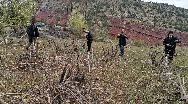 Kahramanmaraş'ta depremzede çiftçiler bağ budama mesaisi başladı.