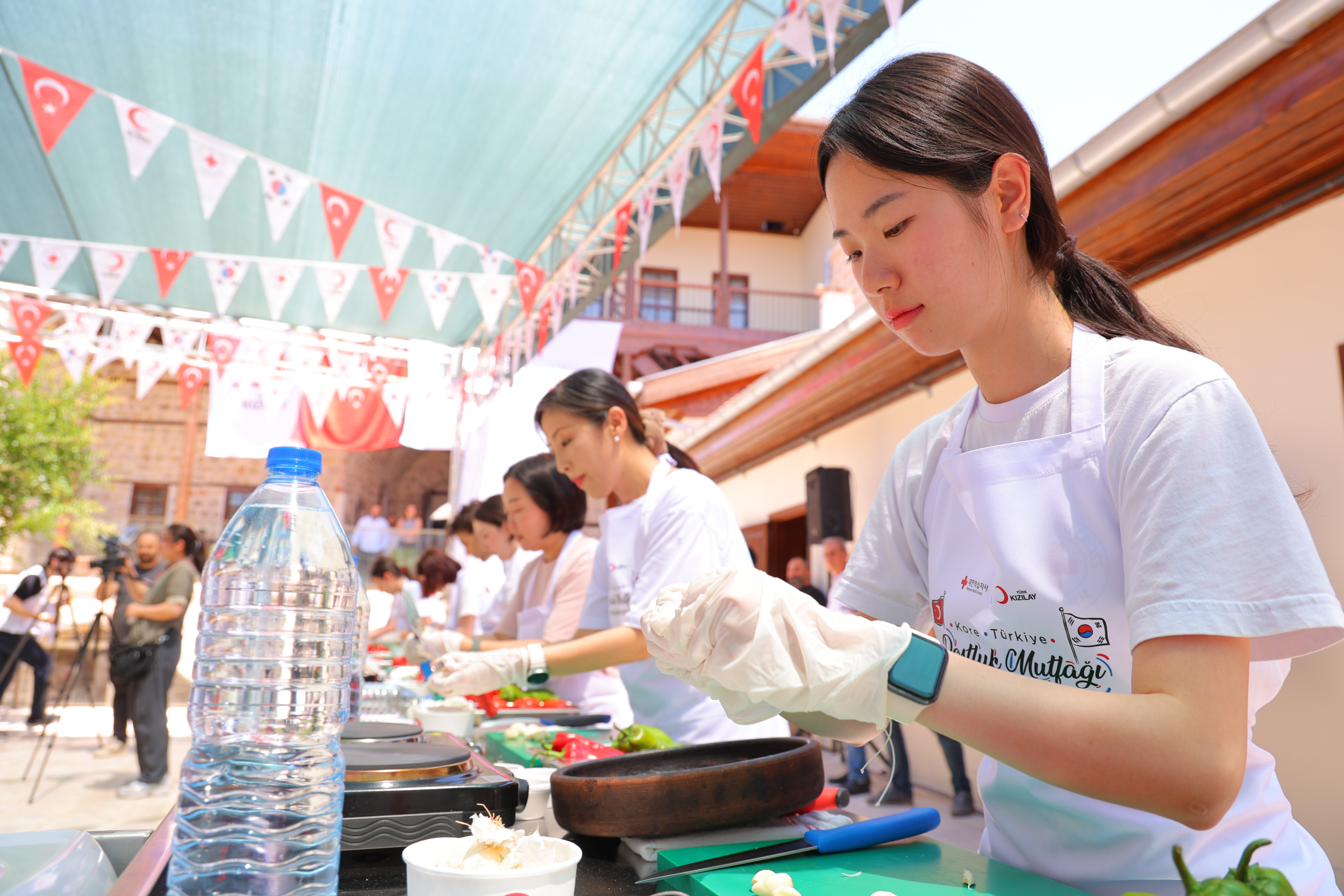 Türk Kızılay'ın deprem bölgesinde sosyal dayanışmayı güçlendirmeye yönelik faaliyetleri kapsamında hayata geçirilen etkinlik, Arslanbey Konağı'nda gerçekleştirildi. Programa, Türk Kızılay ve Kore Kızılhaçı'ndan toplam 15 gönüllü katıldı. Etkinlikte Kızılay gönüllüleri Kore yemekleri, Koreli gönüllüler ise Türk yemekleri hazırladı. Etkinlikte Kore Büyükelçiliği Şefi Hyung Wang ve Kızılay aşevi aşçıbaşı rehberliğinde mutfağa giren gönüllüler, Kore usulü köfte, pilav ve turşunun yanı sıra, Kahramanmaraş'a özgü eliböğründe yemeği ve geleneksel tatlılardan aşure yaptı. Etkinliğe katılan gönüllüler arasında 6 Şubat depremlerinden doğrudan etkilenen isimler de yer aldı. Depremde halasını, kuzenini ve kuzeninin kızını kaybeden ve hâlen konteyner kentte yaşayan Hatice Bilgiç, gönüllülük faaliyetlerine deprem sonrası başladığını söyledi. Hataylı öğrenci Tuğçe Esen ise depremi memleketi Antakya'da yaşadığını belirterek, dayanışma ruhunu yaşatmak için gönüllü olduğunu ifade etti. Etkinliğe, Türk Kızılay gönüllüsü olarak deprem bölgesinde çalışan Halide Barış, Bedirhan Kavasaoğlu ve Fatma Deveboynu da katıldı. Kore Kızılhaçı adına ise proje lideri Donggyu Lim, Kore Dili ve Edebiyatı öğretim görevlisi Dr. Eunmi Yu ve Ankara Üniversitesi öğrencileri gönüllü olarak yer aldı.