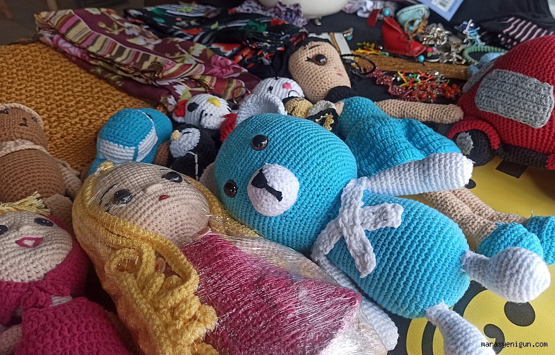 Kahramanmaraş'ta depremzede kadınlar yaptığı ürünleri sergileyerek, halkın beğenisine sunuyor.
