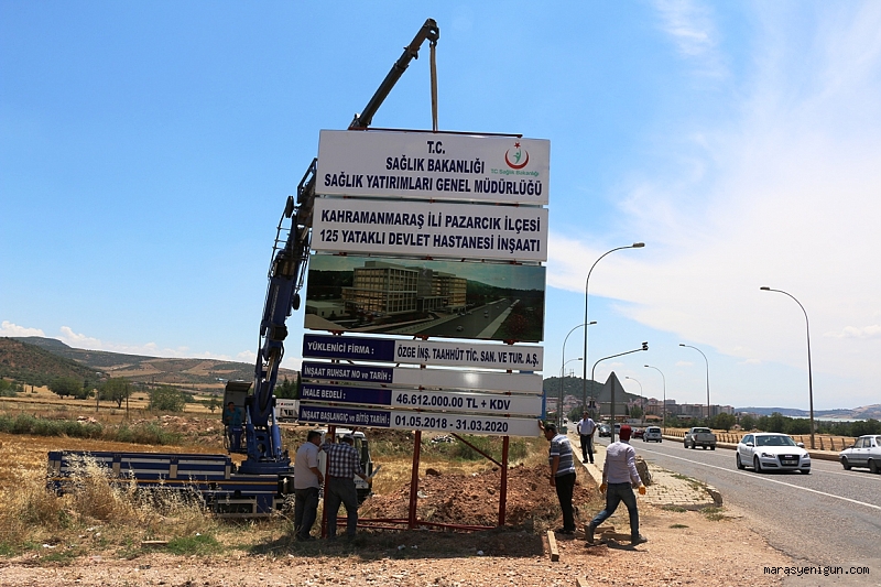 Yukarı Pazarcık Eski Trafik Bölge Amirliği civarında yapılacak olan 125 yataklı yeni Pazarcık Devlet Hastanesi geçtiğimiz günlerde bilgilendirme tabelası asılmasının ardından ilk kazma vuruldu.