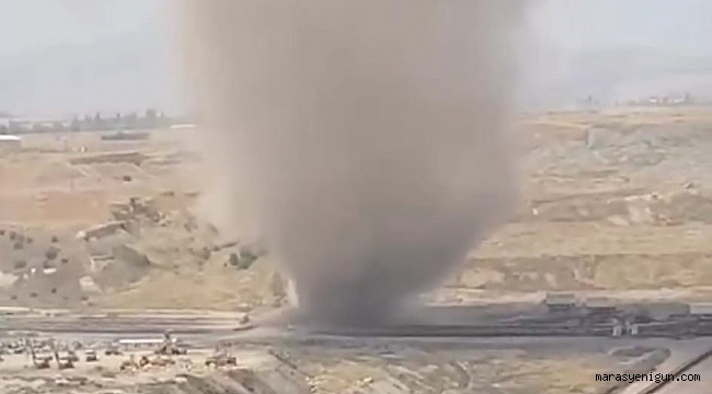 Kahramanmaraş’ın Afşin ilçesindeki kömür sahasında oluşan dev hortum, helikopterden görüntülendi.