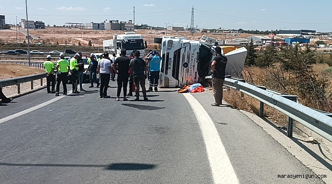 Gaziantep'te direksiyon hakimiyeti kaybolduktan sonra yol kenarındaki Demir bariyerlerin üzerine devrilen kamyonun sürücüsü hayatını kaybetti.
