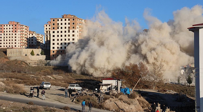 Kahramanmaraş'ta ağır hasarlı binalarda yıkım çalışmaları sürüyorKahramanmaraş merkezli meydana gelen depremler sonrasında ağır hasar raporu verilen binalarda dinamit ile kontrollü yıkım sürüyor.Dulkadiroğlu ilçesindeki 37 bloklu Güneşevler Sitesi'ne 6 Şubat depremlerinden sonra ağır hasar raporu verildi. Yıkım kararı verilen sitedeki binalarda dinamit ile yıkım çalışmaları devam ediyor. Çevrede güvenlik önlemleri alan ekipler geri sayım yaptıktan sonra patlatma işlemini gerçekleşiyor. Ekiplerin geri sayımı ile 3 bina saniyeler içinde yerle bir oldu.Güneşevler Sitesi’nde yerinde dönüşüm yapılacağını söyleyen mahalle muhtarı Mehmet Tolukeser, “37 binamız vardı bin 540 daireden oluşan. Şu ana kadar binalarımızın yarısı yıkıldı. Yılbaşına kadar ise yıkımın tamamlanmasını planlıyoruz. Yerinde dönüşüm projesi ile zemin artı dört olarak kabullenildi halkımız ile istişare halindeyiz. Yüzde 51’i yakalandığında tabii yerlerimiz uygun ise yerinde dönüşümü istiyoruz” diye konuştu.Bir depremzede ise, “Burada yıkımları takip ediyoruz ve binalarımızın yerine yerinde dönüşüm istiyoruz” dedi.