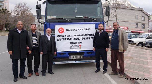 Türkiye Suriye sınırında ağır bombardıman ve saldırı altında olan Bayır bucak Türkmenlerine bir yardım eli de Kahramanmaraş Dulkadiroğlu Müftülüğüne bağlı Doğukent Camiinden geldi.\r\n\r\nCamiden yapılan son anonslardan sonra gelen yardımlarla beraber genciyle yaşlısıyla cemaat tarfından Tır’ı doldurma işlemi başladı. Özenle kolileşen yardımların Tır’a yüklenmesi ise duygu dolu anlara sahne oldu.\r\n\r\nDoğuken Mahalle halkının katkısı Cami görevlileri Fatih Balbaba ve Fatih Hasanoğlullarının büyük özverisiyle bir haftalık düzenlenen kampanyada 1 TIR dolusu gıda, giyecek, battaniye ve ayakkabıdan oluşan yardımlar Dulkadiroğlu Müftüsü İsmail Günay tarafından yapılan dualarla yola çıkarıldı.\r\n\r\nİkindi namazı ardından cami Önünde toplanan kalabalığa hitap eden Dulkadiroğlu Müftüsü İsmail Günay dua öncesi kısa konuşmasında Suriyeli bayır Bucak Türkmenlerine Doğu kent mahallesi ve Cami Görevlilerinin önderliğinde yapılan yardım kampanyasının önemine değindi. Müftü Günay; “İyilikte, güzellik konusunda birbirinize yardım ediniz. Kötülük, günah ve düşmanlık konusunda birbirinize yardım etmeyiz.”ayetini hatırlattı. Türkmenlerin zor durumda, kurşunlar altında olduğunu belirten Müftü İsmail Günay, “Müminler ancak kardeştir. Kardeşliğimiz böyle zamanda daha fazla duyarlı olmamızı gerektiriyor. Emeği geçenleri tebrik ediyorum. Allah yardımlarınızı kabul eylesin.”\r\n\r\nYardımlar hakkında bir açıklamada bulunan Doğukent Cami İmam hatibi Fatih Balbaba, “Komşusu aç yatarken tok yatan bizden değildir” düsturu doğrultusunda, ağır saldırı altında olan Türkmen kardeşlerimize el uzatmaya çalıştıklarını ifade ederek " Bir TIR yardımı yola çıkardık. Gıda, giyim gibi yardım malzemeleri konusunda Cemaatimizin, vatandaşımızın inanılmaz bir talebi var. Allah yardımsever milletimizden razı olsun. Bundan sonrada yardımlar konusunda elimizden geleni yapacağız” dedi.\r\n\r\nCemaat ise, Osmanlı torunu olarak içlerindeki merhamet duygusunu vurguladı, Allah’tan kimseyi dar gününde sahipsiz bırakmamasını dilediler. Türkiye Geneli Bir Caminin Tek Başına Bir Tır dolusu Yardım Malzemesi Toplaması Örnek Olarak Gösterildi.\r\n\r\nDaha sonra yardımlarla doldurulan TIR Müftü İsmail Günayın yapmış olduğu güzel dua ve tekbirlerle Bayır Bucak Türkmenlerine ulaştırılmak üzere uğurlandı. Doğukent Camisi önünden dualar edilerek gönderilen TIR’ın Büyükşehir Belediyesi aracılığı ile Türkmenler’e iletileceği belirtildi.\r\n\r\nHABER-KAMERA: HACI ALİ GÜNEÇIKAN\r\n