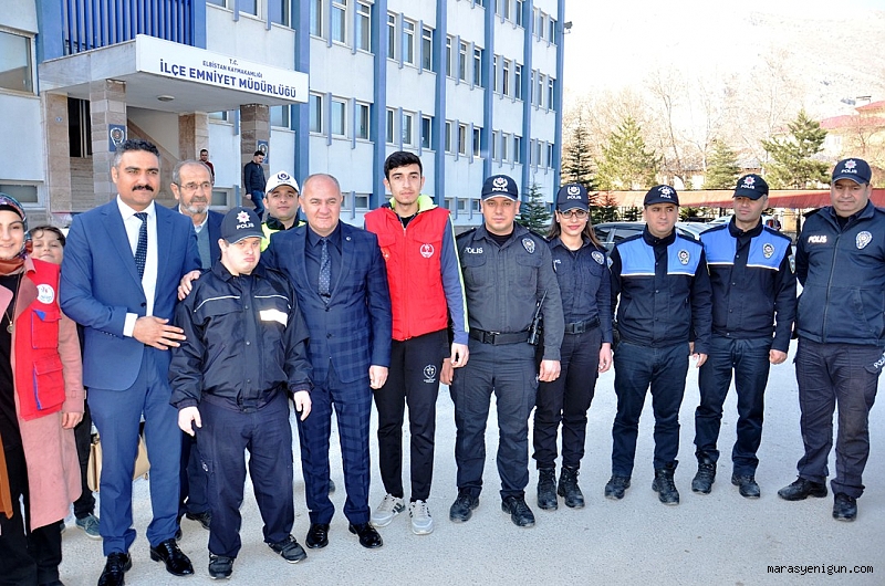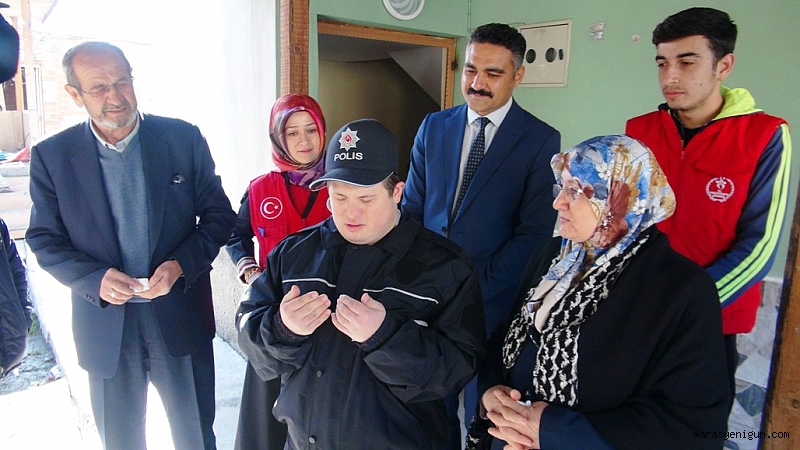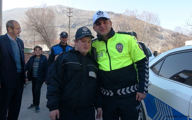 Kahramanmaraş’ın Elbistan ilçesinde 19 yaşındaki down sendromlu Ebubekir Sıddık Kaya’nın polis olma hayali, bir günlüğüne gerçek oldu.