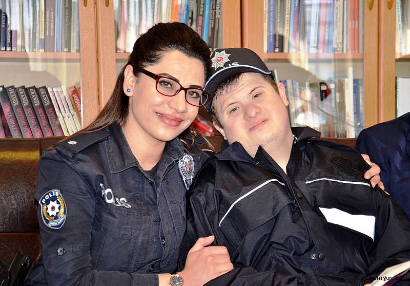 Terzi emeklisi olan 66 yaşındaki Duran ve ev hanımı Gülhanım Kaya (60) çiftinin 5 çocuğundan en küçüğü olan down sendromlu Ebubekir Sıddık Kaya’nın (19), en büyük hayali, Elbistan İlçe Emniyet Müdürlüğü ve Elbistan Gençlik Merkezi’nin organizesiyle 1 günlüğüne de olsa gerçeğe dönüştü. Gençlik Merkezi Müdürü Ahmet Yılmaz ve gönüllü gençler, ilk olarak Ebubekir’in evine giderek onu hazırladı. 21 Mart Dünya Down Sendromlular Günü dolayısıyla polis üniforması giyen down sendromlu Ebubekir’in, Esentepe Mahallesi Akbaş Caddesi üzerindeki evinin önüne siren çalarak gelen polis araçlarını görünce sevinci doruğa çıktı. Kendisini emniyet müdürlüğüne götürmek için gelen polisleri, ‘çavuş’ diyerek selamlayan Ebubekir, onlar için dua etmeyi de unutmadı. Ekip otosuna binen Ebubekir, şehir turu attıktan sonra Elbistan İlçe Emniyet Müdürlüğü’ne ulaştı. Down sendromlu Ebubekir, emniyet bahçesinde İlçe Emniyet Müdürü Hakan Aşık ve personeller tarafından karşılandı. İlçe Emniyet Müdürü Hakan Aşık’ın makamına geçen Ebubekir, burada telsizden adının geçtiği anonsu duyunca sevinci doruğa çıktı. Emniyet Müdürü Hakan Aşık, Ebubekir’e kendi polis gömleğini hediye etti. Ebubekir, daha sonra ilçe emniyet müdürlüğünün birimlerini gezdi. Polisevi’nde misafir edilen Ebubekir, burada çok sevdiği şarkı eşliğine oynadı. Okuma yazma bilmese de kitapları çok seven Ebubekir’e bir de kitap hediye edildi.