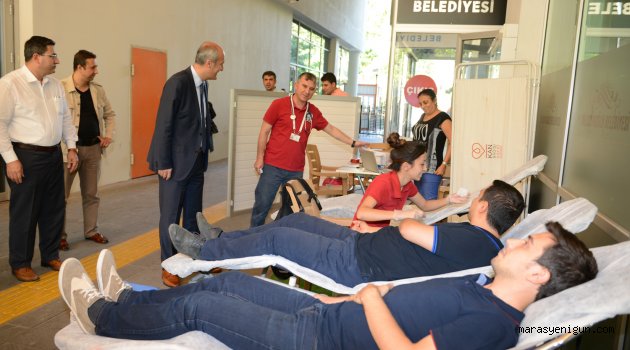 \r\nKızılay Kahramanmaraş Kan Merkezi'nin Metropol İlçe Dulkadiroğlu Belediyesi önüne kurduğu kan bağış standına belediye çalışanları yoğun ilgi göstererek bu anlamlı bağışa destek oldu. Dulkadiroğlu Belediye Başkanı Necati Okay'da kan bağışında bulunan personelleri ziyaret ederek bu duyarlılığa teşekkür etti. Kan bağışı konusunda her Türk vatandaşının daha duyarlı olması gerektiğini anlatan Başkan Okay, bir gün o kana her kesin ihtiyaç duyacağını düşünmesi gerektiğini anlattı.