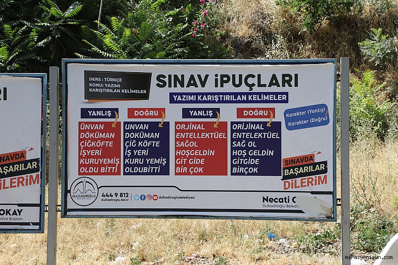 Öğrencilerin sınav esnasında aklında bulundurması gereken Matematik formüllerini billboardlarda yayınlayan Dulkadiroğlu Belediyesi, unutulmaması gereken Türkçe yazım kurallarını da hatırlattı.