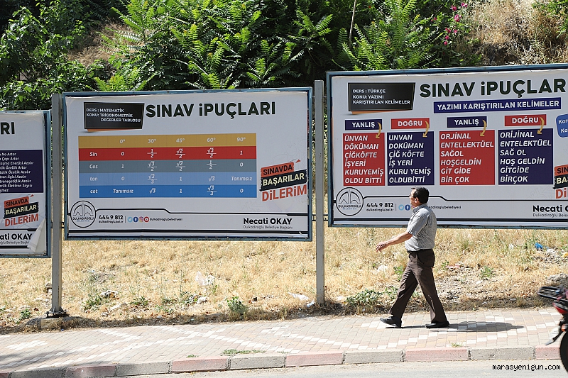 Dulkadiroğlu Belediyesi, hafta sonu yapılacak olan Yükseköğretim Kurumları Sınavı (YKS)’ye girecek öğrenciler için billboardlarda ipuçları yayınladı.