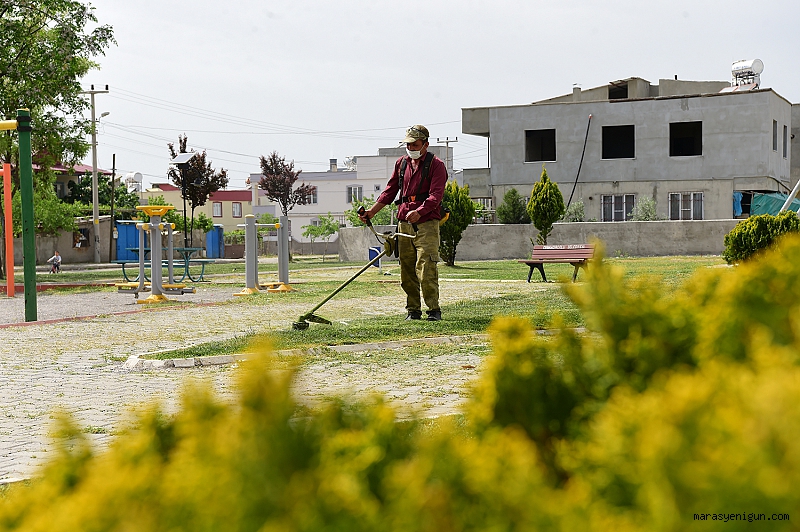 Yeşil alanların bakım çalışmalarını yapan Dulkadiroğlu Belediyesi, özellikle pandemi süresinde vatandaşların oksijen deposu olan park ve bahçeleri yaza hazır hale getirdi.