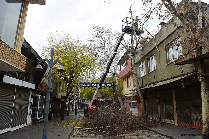 Pandemi kısıtlamalarını fırsat bilen Dulkadiroğlu Belediyesi Park Bahçe ekipleri, hafta içi alış veriş yoğunluğu yaşayan Sakarya Çarşısında bakım çalışmaları yaptı. Çarşıya güzellik katan ağaçları budayarak bakımlarını yapan ekipler, çalışmalar sonrasında detaylı temizlikte yaptı.
