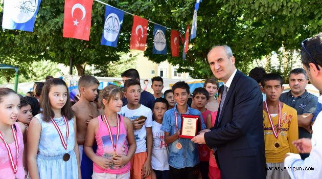 \r\nSosyal ve kültürel projeleriyle dikkat çeken Dulkadiroğlu Belediyesi, yaz ayları boyunca bölgesinde hizmet veren geçici yüzme havuzu etkinliklerinin kapanış törenini yaptı. Yüzmeyi öğrenen ve kendi aralarındaki yarışmalarda dereceye giren sporculara ödülünü Dulkadiroğlu Belediye Başkanı Necati Okay verdi.
