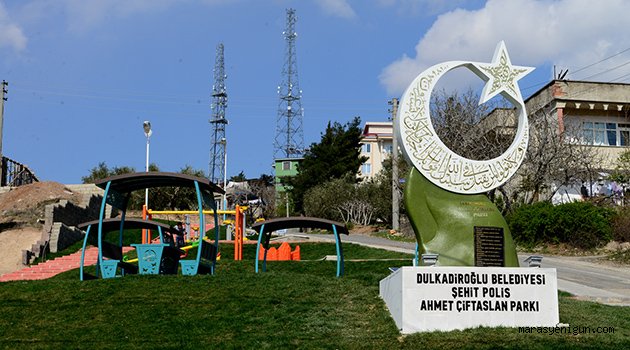 \r\nVatanın bölünmez bütünlüğü uğruna şehit düşen evlatlarının adını yaşatmak amacıyla çalışmalar başlatan Dulkadiroğlu Belediyesi, Şehit Ahmet Çiftaslan parkını tamamlayarak içerisine bir de anıt inşa etti. Geçtiğimiz ay Tevfik Kadıoğlu Bulvarı üzerinde bulunan Bağlarbaşı Mahallesi Şehit Piyade Er Ali Dalkara parkını yenileyen Dulkadiroğlu Belediyesi, park içerisinde şehit anısına bir de anıt inşa etmişti. Bu çalışmasını sürdüren Dulkadiroğlu Belediyesi, Bayazıtlı Mahallesi'nde inşa ettiği parka Sur şehidi Ahmet Çiftaslan'ın adını verdi. Burada da şehit adına bir anıt inşa eden Dulkadiroğlu Belediyesi, şehide ve şehitlerin emaneti olan yakınlarına sahip çıkmaya devam edeceklerini bildirdi.\r\n\r\nKonuyla ilgili bir değerlendirme yapan Dulkadiroğlu Belediye Başkanı Necati Okay, vatanın birliğini ve dirliğini tesis etmek için canını düşünmeden feda eden şehitleri rahmetle andıklarını ifade etti. Bu aziz kahramanların adını yaşatmak adına park ve bahçelere isim çalışması yaptıklarını kaydeden Başkan Okay, şehit Ahmet Çiftaslan'ın adını Bayazıtlı Mahallesi'nde yeni tamamladıkları parka verdiklerini kaydetti. Burada şehit adına bir de anıt inşa ettiklerini hatırlatan Başkan Okay, konuyla ilgili konuşmasını şu şekilde sürdürdü: "Ne büyüksün ki kanın kurtarıyor Tevhîd'i, Bedr'in arslanları ancak, bu kadar şanlı idi, Sana dar gelmeyecek makberi kimler kazsın, Gömelim gel seni târîhe desem, sığmazsın, Herc-ü merc ettiğin edvâra da yetmez o kitâb, Seni ancak ebediyyetler eder istîâb, Bu taşındır diyerek Kâ'be'yi diksem başına, Rûhumun vahyini duysam da geçirsem taşına, Sonra gök kubbeyi alsam da, ridâ namıyle, Kanayan lâhdine çeksem bütün ecrâmıyle, Mor bulutlarla açık türbene çatsam da tavan, Yedi kandilli Süreyyâ'yı uzatsam oradan, Sen bu âvîzenin altında, bürünmüş kanına, Uzanırken, gece mehtâbı getirsem yanına,Türbedârın gibi tâ fecre kadar bekletsem, Gündüzün fecr ile âvîzeni lebriz etsem, Tüllenen mağribi, akşamları sarsam yarana, Yine bir şey yapabildim diyemem hâtırana' diyen Milli Şairimiz Mehmet Akif Ersoy en anlamlı sözlerle şehitlik makamını tarif etmektedir. Şüphesiz bizler de şehitlerimiz için ne yapsak az gelir. Onların aziz hatıralarını yaşatacak parklar ve anıtlarla bir nebze de olsa üzerimize düşen görevi yerine getirmeye çalışıyoruz. Dulkadiroğlu Belediyesi olarak bu konuda yaptığımız çalışmalara yenilerini ekleyerek aziz şehitlerimizin ruhunu şad edeceğiz" diyerek sözlerine son verdi.\r\n\r\n \r\n