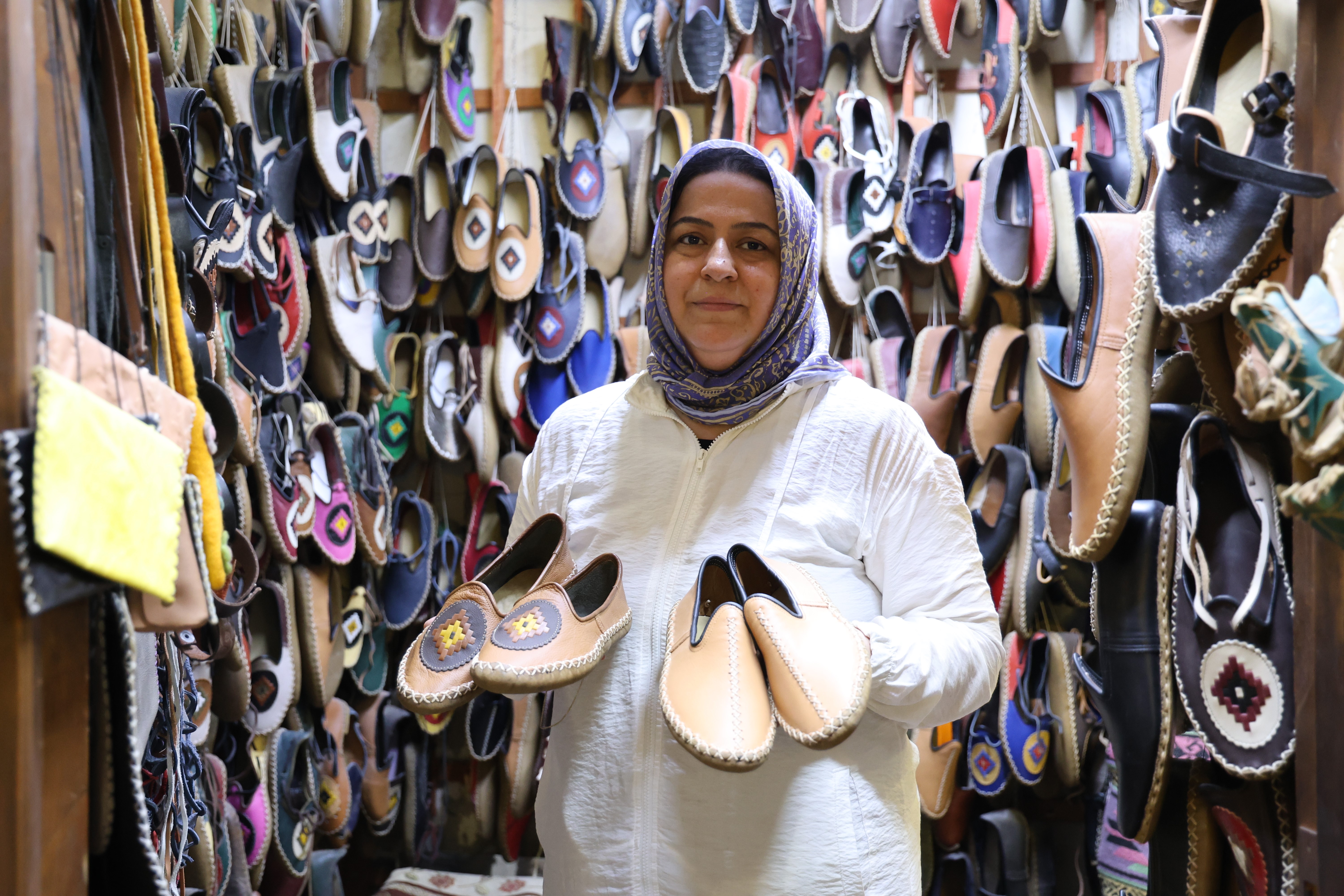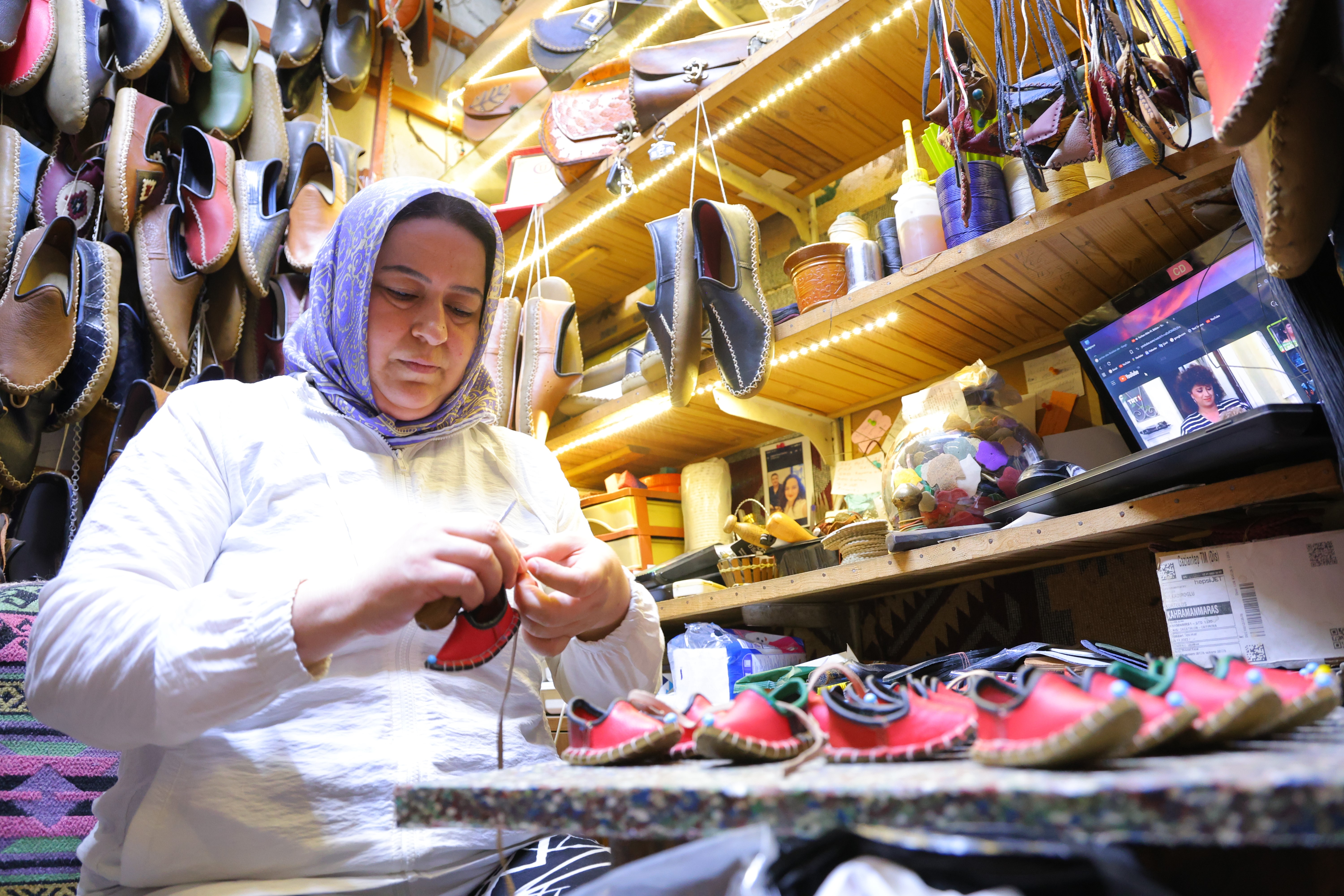 Tarihi Kapalı Çarşıda dede ve babasından öğrendiği yemeni mesleğini yerine getiren Çiğdem Kopar, "Kapalı Çarşı'da tarihi içerik yemeni üretimi yapıyoruz. Maraş'a tescilli içeriklerimiz, yemenilerimiz. Aynı zamanda da el sanatları hocasıyım. Yaklaşık 15 yaşından beri bu işin içindeyiz. Babamdan dedemden öğrendim. 25 yıldır da aktif olarak bu mesleğe devam ettiriyorum. Bayan, erkek ve çocuk olmak üzere her yaş için çarp modellerimiz mevcut" dedi.