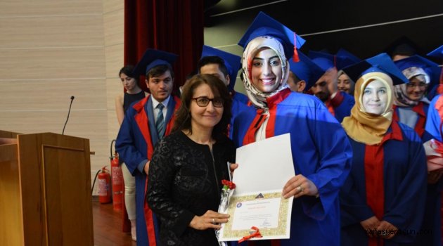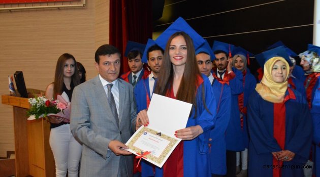 \r\n\r\nKSYO “Mesleki Yemin Töreni”, KSÜ Sağlık Uygulama ve Araştırma Hastanesi Konferans Salonu’nda gerçekleştirildi. Törenin açılış konuşmasını Rektör Yardımcısı Prof. Dr. Ramazan Güneşaçar yaptı. Öğrencilerin mezuniyet aşamasına gelmesinde büyük emekler veren aileleri ve öğretim elemanlarını tebrik eden Güneşaçar öğrencilere seslenerek, “Bugün 4 yıllık eğitiminizi başarıyla tamamlayarak diplomalarınızı almaya hak kazandınız. Ama şunu unutmayınız ki, başarı sorumluluk da getirmektedir. Bu sorumluluklardan birisi de yaşam boyu öğrenme dediğimiz süreçtir. Sizler bu süreçte öğrenmeye ve kendinizi geliştirmeye devam etmelisiniz.” şeklinde konuştu.\r\n\r\nKahramanmaraş Sağlık Yüksekokulu Müdürü Doç. Dr. Mehmet Şahin ise öğrencilere gelecek yaşamlarında başarılar dilerken, “Yeni bilgi ve beceriler elde etmek için öğrenmekten ve araştırmaktan vazgeçmeyin.” tavsiyelerinde bulundu.\r\n\r\nMezun öğrenciler adına KSYO Öğrenci Temsilcisi Ali Tecirli söz alırken, bölümlerini birinci bitiren Ebelik Bölümü’nden Şeyma Demirtaş ve Hemşirelik Bölümü’nden Yasemin Şen de kısa birer konuşma yaptı.\r\n\r\nAçılış konuşmalarının ardından dereceye girenlere plaket ve başarı belgeleri protokol üyeleri tarafından verilirken, Şeyma Demirtaş birinci, Yasemin Şen ikinci, Betül Gülsar üçüncü oldu.\r\n\r\nÖğrencilerin sırasıyla Hemşirelik ve Ebelik yeminlerini okumasıyla devam eden tören, kep atma ve toplu fotoğraf çekimi ile son buldu.\r\n