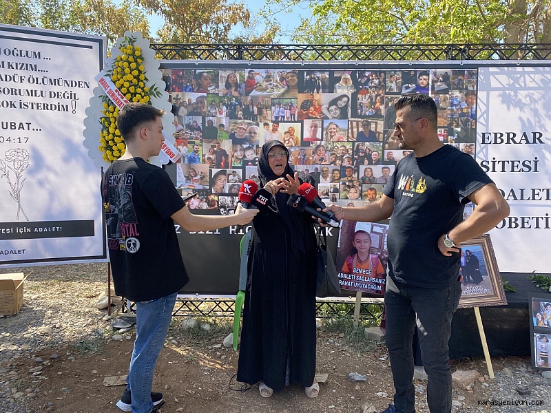 Kahramanmaraş depremlerinin simgesi haline gelen Ebrar Sitesi sakinleri ve yakınları, site alanına yapılması planlanan müzeye karşı çıktıklarını söyledi. Site sakinleri ve yakınını kaybeden vatandaşlar, ilk önce sorumluların cezalandırılmasını istiyor.6 Şubat tarihinde Kahramanmaraş merkezli meydana gelen 7,7 ve 7,6 büyüklüğündeki depremlerde simge haline gelen, neredeyse tamamı yerle bir olan ve yaklaşık bin 400 kişinin hayatını kaybettiği Ebrar Sitesi’nde yakınlarını kaybeden ve daha önce burada oturan vatandaşlar, sitenin enkazında toplandı. Ebrar Sitesi sakinleri adına sorumluların bulunması ve cezalandırılması için bir araya gelen vatandaşlar, alana yapılması planlanan deprem müzesine ise karşı çıktı. “BİN 400 İNSANIMIZ GÖZ GÖRE GÖRE ÖLÜME TERK EDİLDİ”Ebrar Sitesi’nde yakınlarını kaybeden Muhammet Gültekin Taner, “Burada toplanmamızın asıl amacı, bizlere bilirkişi raporu diye verilen beton, demir örnekleri alınmadan bize yeterli denilen bilirkişi raporunu kabul etmemektir. Buna ek olarak 2020 yılında başta Ebrar Sitesi başta olmak üzere Kahramanmaraş için AFAD tarafından düzenlenen İRAP’a göre asıl sorunun zemin sıvılaşması olduğu, herhangi bir yerleşime açık olmadığı belirtildi. Bin 400 insanımız göz göre göre ölüme terk edilmiştir. Asıl istediğimiz şey, ailelerimiz için kaybettiklerimiz için adalettir. Hak için adalet için liyakat için bu bölgenin müze olmaması için siz aileleri ve bizleri yalnız bırakmayan dostlarımızı saygı ile selamlıyorum” dedi. “ENKAZA YAPILACAK OLAN MÜZEYİ KABUL ETMİYORUM”Bir diğer vatandaş Gülhan Sarp ise, “22 yaşında kardeşini 6 Şubat depremlerinde kaybeden bir ablayım. Bir şehir olarak bizler morglara sığmayıp, spor salonlarına, yollara ve refüjlere serilmiş insanların yakınlarıyız. Asla ve asla kardeşlerime, annelerime, babalarıma, evlatlarıma mezar olan Ebrar Sitesi’nin enkazına yapılacak olan müzeyi kabul etmiyorum. Adaletin yerini bulması için bizler her ay burada toplanacağız. Artık ağzımın çıktığı kadar bağırmayacağım. Çünkü gördük ki bağırmak bu memlekette işe yaramıyor” diye konuştu. “BİZİM YAVRULARIMIZIN KANI YERDE KALMASIN”İlk başta torunları ve diğer yakınları için adalet isteyen Fındık Aksu, “Burada hepsini kurban verdim. Kendi şimdi çelik binada zevkini sürüyor. Ben çocuklarımın hakkını istiyorum. Benim yavrularım gitti. Benim çocuklarım, diğer çocuklarımız hepsi gençti. Hepimizin hakkını aradığımız için teşekkür ediyorum. Bizim yavrularımızın kanı yerde kalmasın. Buranın müze olmasını istemiyorum” ifadelerini kullandı. “BURASI MÜZE OLMASIN, BİZE ADALET VERİLSİN”Ebrar Sitesi’nde birçok yakınını kaybettiğini aktaran bir vatandaş ise, “Gerçekten yaşadığımız şeyleri anlatmanın tarifi yok. Sadece istediğimiz şey adalet, biraz olsun adalet. Buraya müze yapılmasını istemiyoruz. Ayrıca o bilirkişi raporlarını istiyoruz. Burası müze olmasın, bize adalet verilsin. Çok canımız yandı, en azından bu iyi gelecek” şeklinde konuştu. “ADALETİ SAĞLAMALISINIZ”Ebrar Sitesi'nde 9 saat enkazda kalan, anne ve babasını kaybeden Fatma Nur Akçelik ise şunları dile getirdi: “Annemle babamı kaybettiğim, tanıdığım insanları kaybettiğim yere müze yapmanızı istemiyorum. Adaleti sağlayın, burası imara açılmamalıydı, imara açılmayacaktı. İmara açılamaz dediniz, neden imara açtınız, neden 11-12 katlı binalar yaptınız? İlk 10 saniyede yıkılan binada annem ve babamı kaybettim, ben 9 saat sonra çıktım enkazdan. Buraya imar izni verenlerden hesap sorulmasını istiyorum. Bilirkişi raporunu kabul etmiyorum, bilirkişi raporunu çıkartacaksınız, çıkartmalısınız. Adaleti sağlamalısınız, çünkü siz de biliyorsunuz burası dere yatağı, marul tarlası. İmara açılmayacaktı, açılamazdı, açmayacaktınız.”