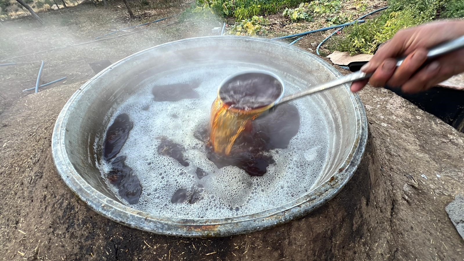 Kahramanmaraş'ın Ekinözü ilçesinde bağ bozumunun tamamlanmasıyla birlikte köylülerde üzüm pekmezi telaşı başladı. Bölgenin meşhur Maraş Kabarcık üzümünden yapılan pekmez, eski usul yöntemlerle köylülerin sofralarına hazırlanıyor.