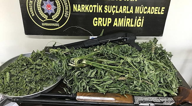 Kahramanmaraş’ın Elbistan ilçesinde düzenlenen uyuşturucu operasyonunda 1 kilogram 875 gram esrar ile 3 adet tüfek ele geçirildi.