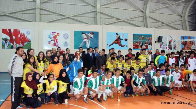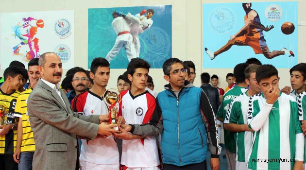 \r\n\r\n 2012016 eğitim-öğretim dönemi okul sporları turnuvalarında geçtiğimiz hafta başlayan futsal karşılaşmaları Elbistan Gençlik Merkezinde oynandı. Çok sayıda takımın katıldığı turnuva, genç erkekler ve genç kızlar kategorilerinde gerçekleştirildi.\r\n\r\n Yaklaşık 1 hafta süren karşılaşmaların sonucunda dereceye giren takımlara kupaları törenle verildi. Genç erkekler kategorisinde birinciliği Mesleki ve Teknik Anadolu Lisesi elde ederken, Yavuz Selim Mesleki ve Teknik Anadolu Lisesi ikinci, İMKB Fen Lisesi üçüncü ve Ekinözü ÇPL de dördüncü oldu. Genç kızlar kategorisinde ise şampiyonluğu Elbistan Anadolu Lisesi elde etti. İMKB Fen Lisesi ikinci, Yavuz Selim Mesleki ve Teknik Anadolu Lisesi üçüncü ve Dulkadiroğlu Anadolu Lisesi de dördüncü oldu. Dereceye giren okul takımlarına kupaları törene katılan daire amirleri tarafından verildi. Her kategoride birinci olan takımlar, Kahramanmaraş’ta yapılacak olan turnuvalarda Elbistan’ı temsil edecek.\r\n\r\n \r\n