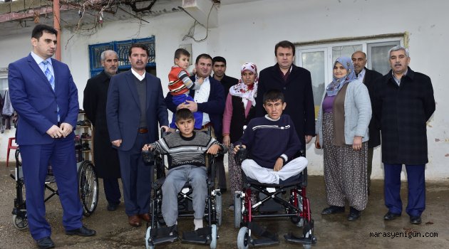 Kahramanmaraş Büyükşehir Belediyesi Türkoğlu ilçesinde bir ailenin engelli çocuklarına akülü sandalye dağıttı.