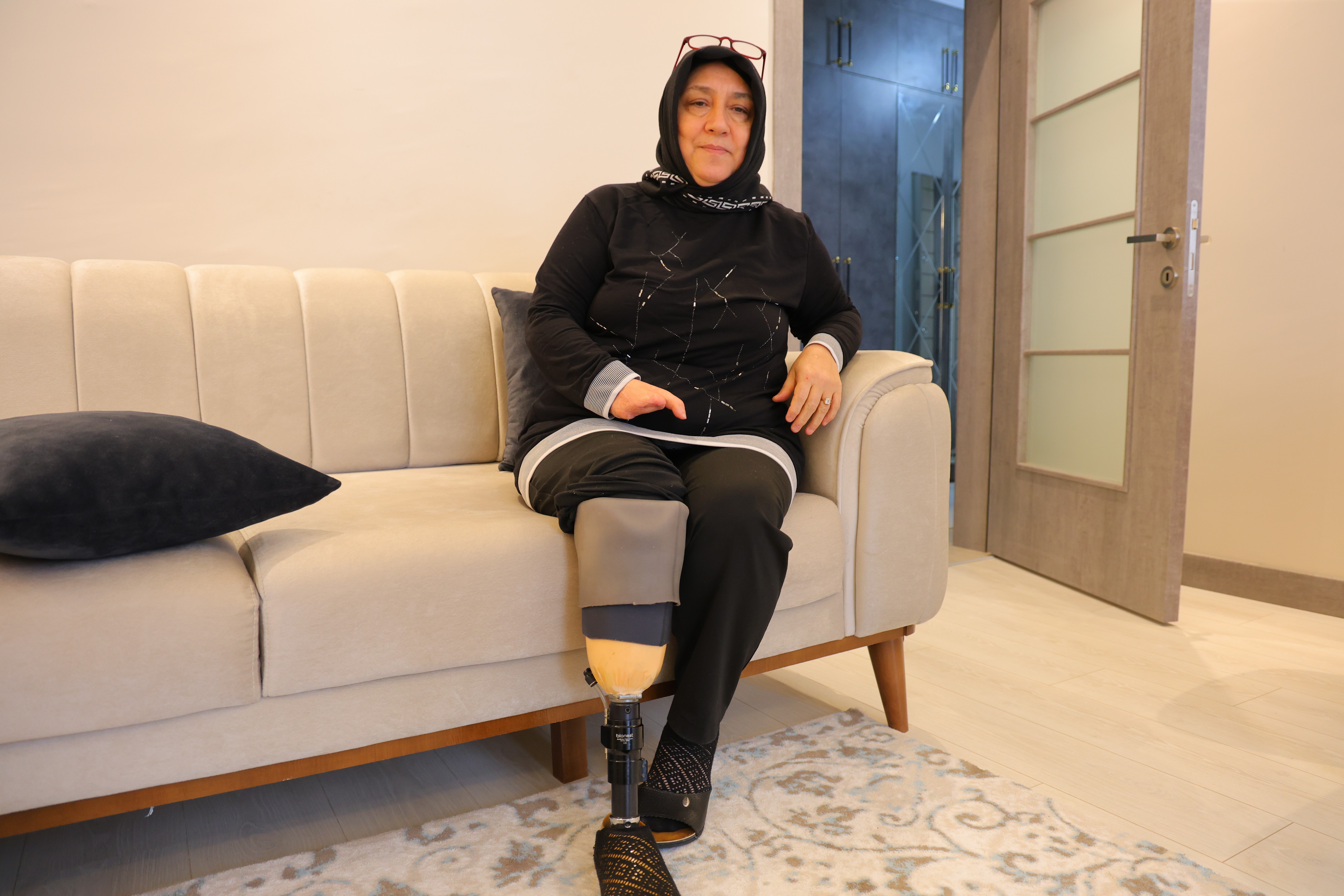 Kahramanmaraş merkezli 6 Şubat depremlerinde kocası, 1 oğlu ve annesi vefat eden diğer 2 çocuğu 9 gün sonra kendi ise 5 günün ardından enkazdan sağ bacağını kaybederek çıkan kadın, devlet tarafından kendisine tahsis edilen yeni yuvasında yaşama yeniden tutunuyor.
