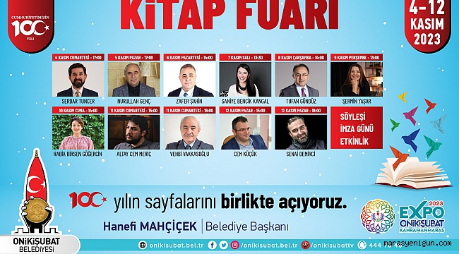 Onikişubat Belediyesi, ev sahipliğini yaptığı EXPO 2023 kapsamında 4-12 Kasım tarihleri arasında düzenleyeceği Kitap Fuarı ile birbirinden değerli yayınevlerini ve yazarları Kahramanmaraş’ta ağırlayacak. Gerek yurt içinden gerekse yurt dışından binlerce okuru sevdiği yazarlarla buluşturacak EXPO 2023 Kitap Fuarı’nda, yüzlerce kültür etkinliği ve imza günleri düzenlenecek.Belediye Başkanı Hanefi Mahçiçek’in gayretleriyle Türkiye’ye kazandırılan ve 23 ülkenin katılımıyla 14 Ekim’de açılışı gerçekleştirilen Uluslararası EXPO 2023, kentin güçlü yönlerini marka yapma hedefiyle çeşitli etkinliklere ev sahipliği yapıyor.Yetiştirdiği şair ve yazarlardan hareketle, ‘Edebiyat’ın Başkenti ve Yedi Güzel Adam’ın şehri’ unvanını alan Kahramanmaraş’ın edebi yönünü uluslararası platforma taşımayı amaçlayan Başkan Mahçiçek öncülüğündeki Onikişubat Belediyesi, bu kez kitapseverleribir araya getirecek.23 ülke ve 21 şehir bahçesi ile botanik zenginliklerin doyasıya yaşandığı; tarih, kültür, sanat ve lezzetlerin sergilendiği EXPO 2023 Alanı’nda düzenlenecek Kitap Fuarı, okurlarıyla buluşmak için gün sayıyor.EN SEVİLEN YAZARLAR VE YAYINEVLERİ EXPO 2023 KİTAP FUARI’NDAOnikişubat Belediyesi, ev sahipliği yaptığı Uluslararası EXPO 2023 kapsamında ‘100 yılın sayfalarını birlikte açıyoruz’ sloganıyla Kitap Fuarı düzenliyor.4-12 Kasım tarihleri arasında 100’ü aşkın yayınevinin yer alacağı Kitap Fuarı, Serdar Tuncer, Nurullah Genç, Zafer Şahin, Tufan Gündüz, Vehbi Vakkasoğlu, Saniye Bencik Kangal,Şermin Yaşar, Altay Cem Meriç, Rabia Birsen Göğercin, Cem Küçük ve Senai Demirci gibi çok sevilen yazarları okurlarıyla buluşturacak.Muhteşem sergi alanında birbirinden güzel söyleşi, imza günleri ve kültürel etkinliklerle dolu EXPO 2023 Kitap Fuarı’nın ziyaretçi akınına uğraması bekleniyor.Girişin ücretsiz olduğu fuar, hafta içi ve hafta sonu 10.00-21.00 saatleri arasında ziyaret edilebilecek.Fuar, son günü olan 12 Kasım 2023 Pazar günü sona erecek.Fuarla ilgili etkinlik listesi, imza günleri ve detaylı bilgilereOnikişubat Belediyesi’nin sosyal medya hesaplarından ve resmi internet adresinden erişilebilecek.FUARA 45 YAYINEVİNDEN, 350 BİNDEN FAZLA KİTAP ÇEŞİDİ OLACAKEn çok takip edilen 45 yayınevinin yer alacağı Kitap Fuarı’nda; Doğan Kitap, Türkiye Diyanet Vakfı Yayınları, Timaş Yayınları, Nesil Yayınları, Hayat Yayınları, Doğu Batı Yayınları, Yediveren Yayınları, Pınar Yayınları, Yeditepe Yayınları, Alfa Yayın Grubu, Erdem Yayınları, Kronik Kitap, İş Bankası Kültür Yayınları, Yapı Kredi Yayınları, Can Yayınları, Epsilon Yayınları, Uğur Böceği Yayınları,Bab-ı Ali Yayınları, Profil Yayınları, İnsan Yayınları,İndigoYayınları, Beyaz Balina Yayınları,YakamozYayınları, Bilgi Yayınları, Beta Kids Yayınları, Damla Yayınları, Çıra Yayınları, Cezve Yayınları, Beyan Yayınları, İnkılap Yayınları, Hayy Kitap, Nar Yayınları, Lotus Yayınları,EfsusYayınları, Öncü-Ark Yayınları, Turkuaz Yayınları, KETEBE Yayınları, Altın Yayınları, Akıl Fikir Yayınları, MESDER Yayınları, Salkım Söğüt Yayınları, Düşeyaz Dergisi, Alkış Dergisi stant kuracak.Ayrıca, Kahramanmaraşlı şair ve yazarların stantlarının olacağı fuarda, depremde hayatını kaybeden Yaşar Alparslan anısına da stant kurulacak.BAŞKAN MAHÇİÇEK, ÖĞRENCİLERİ MEKTUPLA DAVET ETTİOnikişubat Belediye Başkanı Hanefi Mahçiçek, yayımladığı mektupları kentteki öğrencileri de Kitap Fuarı davet etti. Başkan Mahçiçek, mektubunda şu ifadeleri kullandı, “Bizler, il genelinde Kahramanmaraş Bilgi İle Buluşuyor gibi birçok farklı projeyle yüzbinlerce kitabı siz öğrencilerimize ücretsiz dağıtarak, eğitiminize ve kitap okuma alışkanlığı kazanmanıza destek olmaya çalıştık. Şimdi kitaplarla aranızdaki tüm engelleri kaldırmak ve sizi on binlerce farklı eserle buluşturmak için 4-12 Kasım tarihlerinde Onikişubat Kitap Fuarı’nı düzenliyoruz. 100’ün üzerinde saygın yayınevinin katılımıyla Expo 2023 Fuar Alanında gerçekleşecek organizasyon kapsamında edebiyat ve düşünce dünyasından birçok usta kalem de söyleşi, imza günü gibi etkinlerde sizlerle bir araya gelecek. Kitap Fuarımızın mottosunu Türkiye Yüzyılı vizyonundan hareketle, “100 yılın sayfalarını birlikte açıyoruz” olarak belirledik. Cumhuriyetimizin 100. yılını idrak ettiğimiz ve yeni bir yüzyılın kapılarını araladığımız bugünlerde hayata geçirdiğimiz bu etkinliğin en önemli konukları ise, hiç şüphe yok ki sizlersiniz. Gelin ve Türkiye Yüzyılı’na ilk adımlarımızı birlikte atalım. Gelin, 100 yılın sayfalarını birlikte açalım…”BAŞKAN MAHÇİÇEK, EĞİTİME VE ÖĞRENCİLERE VERDİĞİ DESTEKLE BİLİNİYORTürkiye’nin güçlü geleceğinin sağlam temeller üzerine inşa edilmesi hedefiyle sorumluluk üstlenerek eğitime desteğini her yıl arttırarak sürdüren Onikişubat Belediyesi, Başkan Hanefi Mahçiçek’in ‘eğitim’ vizyonu çerçevesinde ilçeye kazandırdığı tesisler ve projelerle adından söz ettirmeye devam ediyor.Öğrencilere ve eğitime yönelik projeleriyle ‘öğrenci dostu başkan’ unvanını alan Başkan Mahçiçek, inşa ettiği okullar, kütüphaneler, Sosyal Etkinlik Merkezleri ile Bilgi ve Kültür Evleri’ni öğrencilere seferber etti.Bu kapsamda maksimum seviyede faydalanılan tesislerde, ‘eğitimde fırsat eşitliği’ hedefiyle özellikle dezavantajlı öğrencilerin başarılı olması amacıyla her yıl Üniversite Hazırlık Kursları düzenliyor.Onikişubat Belediyesi, Milli Eğitim Bakanlığı’nın ödüllü projesi ‘Kahramanmaraş Bilgiyle Buluşuyor’u da her yıl düzenleyerek öğrencilerin eğitim süreci