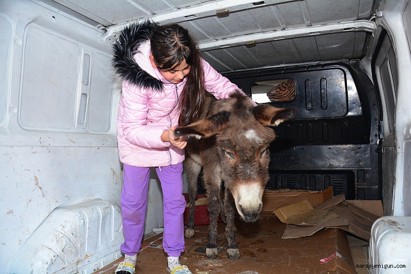 Kahramanmaraş’ın Elbistan ilçesinde sahibi tarafından işkence gören eşek, geçici olarak bakımını üstlenen aileden sanatçı Haluk Levent’in başkanlığını yaptığı Ahbap Derneği görevlilerince alınarak İzmir’deki kurtarılmış hayvan çiftliğine götürüldü.