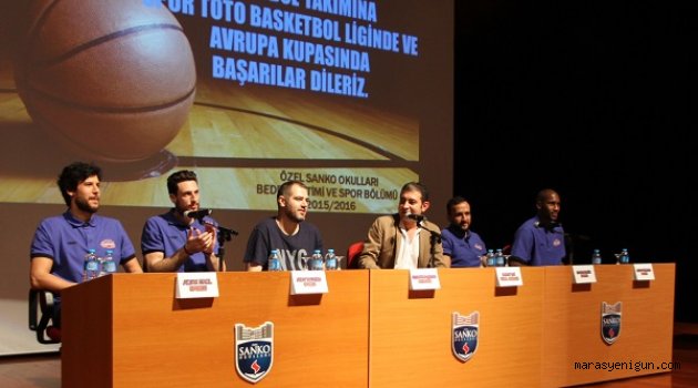 Abdulkadir Konukoğlu Kültür ve Spor Merkezi’nde düzenlenen söyleşiye ortaokul, kolej, fen ve teknoloji liseis öğrencileri, yöneticileri, öğretmenleri, Gaziantep Royal Halı Basketbol Takımı Genel Menajeri Boray Dai, Antrenör Stefanos Dedas, Takım Kaptanı Erden Eryüz ile sporculardan Altan Erel, Andy Rautins ve Jawad Williams katıldı.