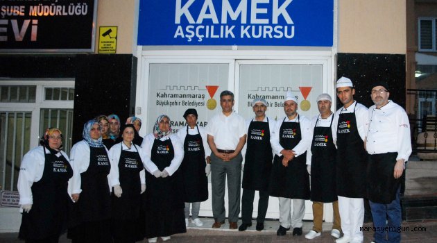 \r\n\r\nKahramanmaraş Büyükşehir Belediyesi Sağlık ve Sosyal İşler Dairesi Başkanlığı Mesleki Eğitim Şube Müdürlüğü tarafından düzenlenen Aşçı Yardımcısı Kursu sonunda kursiyerlere sertifikaları verilecek.\r\n\r\nBüyükşehir Belediyesi Sağlık ve Sosyal İşler Dairesi Başkanlığı Sosyal Hizmetler Şube Müdürlüğü’ne bağlı aşevinde devam eden kurslara 20 kursiyer katılıyor.\r\n\r\nEkim ayı sonunda bitecek olan kursun sonunda kursiyerlere Halk Eğitim Müdürlüğü kanalıyla sertifikaları verilecek.\r\n\r\nKurslarda sanitasyon ve hijyen kuralları başta olmak üzere, sosun yapılışı, et yemekleri, salata ve salata sosları, pilav, makarna ve hamur çeşitleri, krem şanti, sos ve tatlı şurupları gibi bir çok konuda eğitim veriliyor.\r\n\r\n \r\n