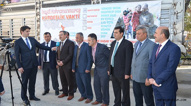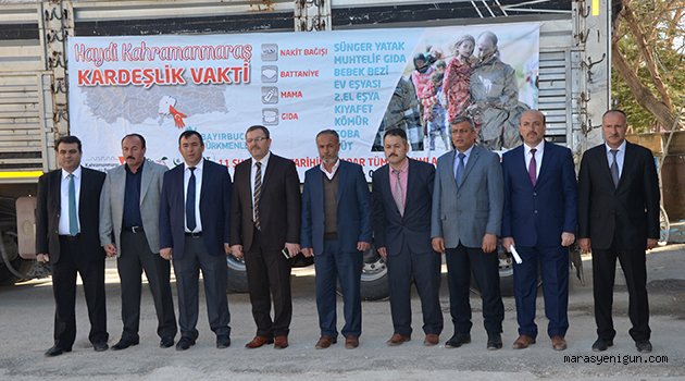\r\n\r\nKahramanmaraş Büyükşehir Belediyesi ile Hayrat Vakfının ortaklaşa düzenledikleri Bayırbucak Türkmenleri’ne yardım kampanyasına Göksun Belediyesinin desteği devam ediyor. Son bir ay içinde 2 tır yardım malzemesini teslim eden Göksun Belediyesi, İlçe Milli Eğitim Müdürlüğü ve İlçe Müftülüğü işbirliği ile topladığı 1 tır yardım malzemesini daha Bayırbucak Türkmenleri’ne ulaştırılmak üzere Kahramanmaraş Büyükşehir Belediyesine gönderdi.\r\n\r\nGöksun Belediye Başkanı Hüseyin Coşkun Aydın, yardım tırının gönderilişinde yaptığı konuşmada, Göksun halkının ve kamu kurumlarının yardım kampanyasına gerekli hassasiyeti göstermelerinin sevindirici olduğunu söyledi.\r\n\r\n \r\n\r\nGöksun olarak 3 tır yardım malzemesi göndermenin mutluluk verici olduğunu ifade eden Başkan Aydın, şunları kaydetti:\r\n\r\n \r\n\r\n“Bayırbucak’taki ve Suriye’deki diğer kardeşlerimize her şeyden önce Rabbimin güç kuvvet vermesini temenni ediyoruz. Bizde bir kardeşleri olarak, kardeşlik duygularımı ve bağlarımı pekiştirmek adına karınca kararınca yardımlarda bulunmayı hedefliyoruz. Rabbim onların gücünü kuvvetini artırsın, düşmanlara fırsat vermesin, birliğimizi ve dirliğimizi bozmasın inşallah. Bizler ilçe belediyeleri olarak Büyükşehir Belediyemizin ilgili vakıfla yapmış olduğu işbirliğine gerekli desteği sağladık. Bundan dolayı halkımıza gösterdikleri hassasiyet ve yardımseverliklerinden dolayı bir kez daha teşekkür ediyorum.”\r\n\r\n \r\n\r\nYardım tırının gönderilişi sırasında İlçe Milli Eğitim Müdürü Halit Demirtaş ile diğer ilgililerde hazır bulundu.\r\n
