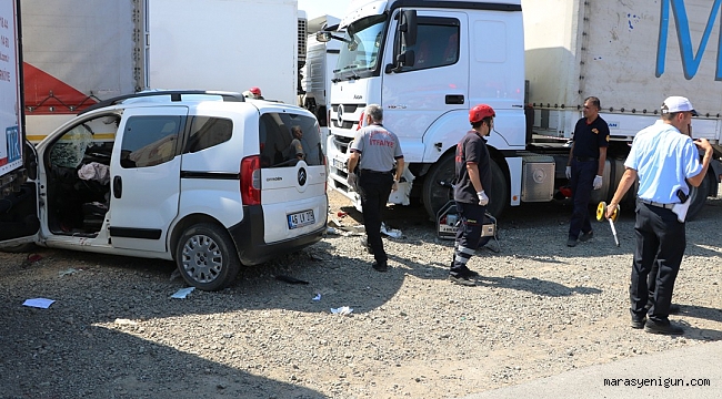 Kaza, Kahramanmaraş-Adana Karayolu’nun 8’inci kilometresinde meydana geldi. Sürücüsünün kimliği öğrenilemeyen 46 LV 279 plakalı hafif ticari araç, direksiyon hakimiyetinin kaybolması sonucu yol kenarında park halinde bulunan tıra arkadan çarptı.