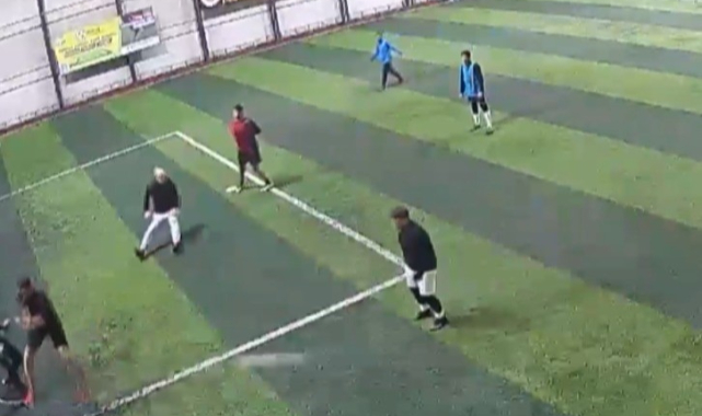 O anlar ise halı sahanın güvenlik kamerasına yansıdı. Görüntüler, kale önündeki şahsın biranda yere düşüp hayatını kaybettiği yer aldı.