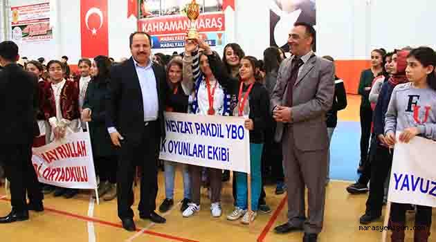 \r\n\r\n Yoğun bir katılımla gerçekleştirilen yarışmalara, düzenlemeli ve düzenlemesiz kategorilerde toplamda 18 okul halkoyunları ekibi katıldı.Vatandaşlarımız, öğrenci velileri, okul idarecileri görsel bir şölene dönüşen yarışları tribünleri doldurarak desteklediler.\r\n\r\n Halkoyunları Yarışmaları şu şekilde sonuçlandı;\r\n\r\nYILDIZLAR (DÜZENLEMESİZ)\r\n\r\n1. 87.00 puanla Sergentepe Ortaokulu\r\n\r\n2. 86.66 puanla Göksun Yavuz Selim Ortaokulu\r\n\r\n3. 81.33 puanla Dumlupınar Ortaokulu \r\n\r\n4. 80.66 puanla Göksun Nevzat Pakdil Ortaokulu\r\n\r\n \r\n\r\nGENÇLER (DÜZENLEMESİZ)\r\n\r\n1. 90.33 puanla Şehit İdari Ateşe Galip Özmen M.T.A.L\r\n\r\n2. 88.00 puanla TOKİ Duran Karabobuğaş Anadolu lisesi\r\n\r\n3. 87.50 puanla Kahramanmaraş Mesleki ve Teknik Anadolu Lisesi \r\n\r\n4. 86.83 puanla Kahramanmaraş Anadolu Lisesi \r\n\r\n \r\n\r\nGENÇLER (DÜZENLEMELİ)\r\n\r\n1. 85.33 puanla Afşin Eshabı Keyf Lisesi\r\n\r\n2. 78.66 puanla Nurhak Çok Proğramlı Anadolu Lisesi\r\n\r\n3. 78.33 puanla Cumhuriyet Mesleki ve Teknik Anadolu Lisesi \r\n\r\n \r\n\r\n Halk Oyunları Yarışlarında derece elde eden okul takımlarımıza kupaları, sporculara ise madalya ve başarı belgeleri Gençlik Hizmetleri ve Spor İl Müdürümüz Ali İhsan Kabakcı ve Okul İdarecileri tarafından takdim edildi.\r\n\r\n \r\n\r\n \r\n\r\n \r\n\r\n \r\n