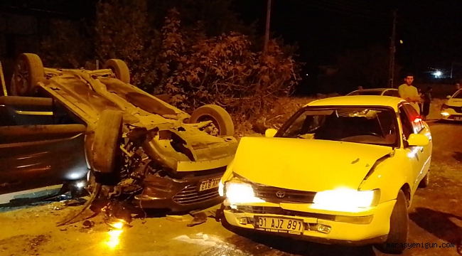 Hatay’da 2 aracın çarpışması sonucu meydana gelen trafik kazasında 4 kişi yaralandı.Kaza, saat 20.30 sıralarında İskenderun - Antakya yolu Serinyol kavşağında meydana geldi. Ara sokaktan çevre yoluna çıkış yapmak isteyen 31 AHV 813 plakalı otomobil, seyir halindeki 31 AJZ 891 plakalı otomobille çarpıştı. Çarpışma sonrası 31 AHV 813 plakalı otomobil ters döndü. Kazada, araçlarda bulunan 4 yaralı şahıs olay yerine gelen ambulanslarla hastaneye kaldırıldı.Polis ekipleri kazayla ilgili inceleme başlattı.