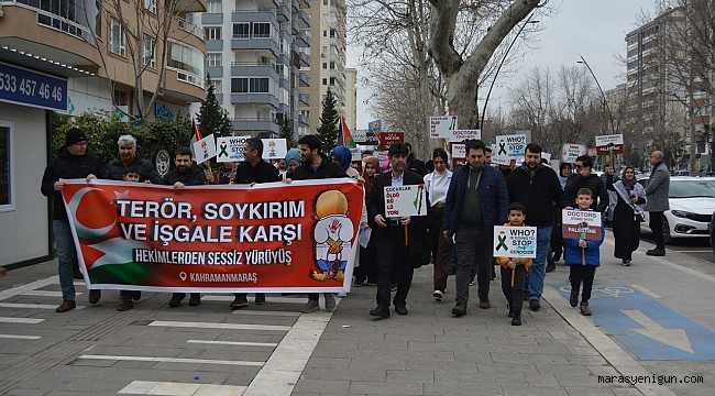 Kahramanmaraş’ta görev yapan hekim ve sağlık çalışanları, İsrail'in Gazze'ye yönelik saldırılarına tepki göstermek için "sessiz yürüyüş" düzenledi.