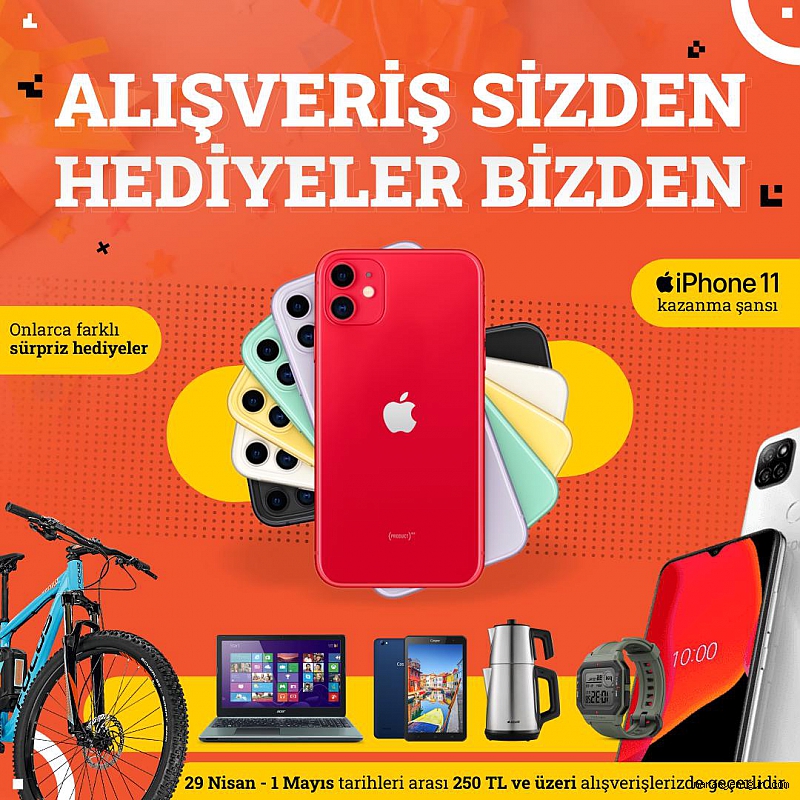 Elbistan Belediye Başkanı Mehmet Gürbüz, 3 gün sürecek Alışveriş Bayramı’nda 250 lira ve üstü alışveriş yapanların; çekilişle cep telefonu, laptop, bisiklet ve tablet bilgisayar gibi çok sayıda ürün kazanma şansına sahip olacağını söyledi.
